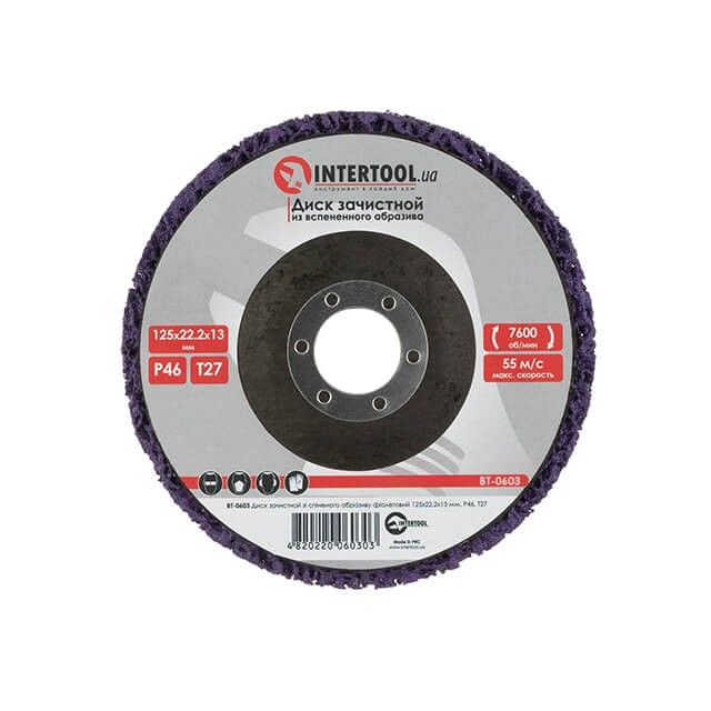 Диск зачистной зі спіненого абразиву фіолетовий 125 * 22,2 * 13 мм, P46, T27 INTERTOOL BT-0603