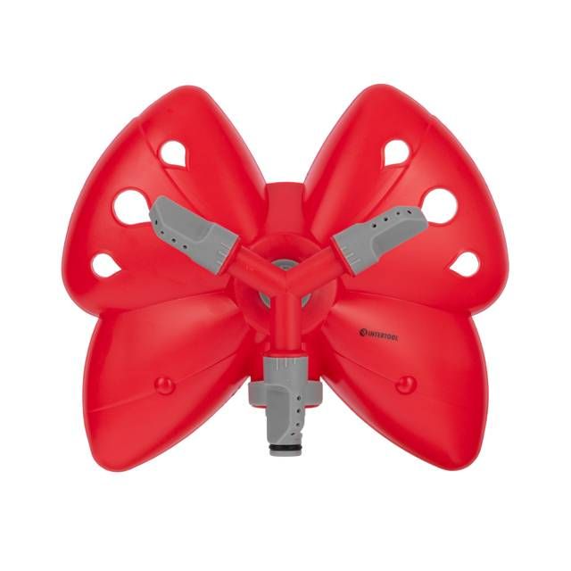 Дощувальний пристрій круговий INTERTOOL GE-0070 з головкою, що обертається, із трьох ріжків-зрошувачів, закріплена на платформі, що виконана в сучасному стилі у вигляді метелика. Виготовлений із легкого і міцного пластику, забезпечує гарну стійкість, не зминаючи газонну траву.