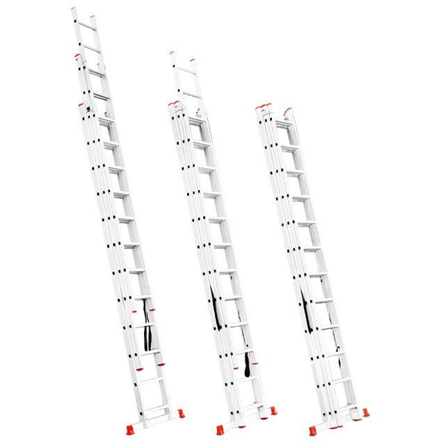 Драбина з алюмінію, 3-х секційна універсальна розкладна, 3x12 сход., 7,89м INTERTOOL LT-0312