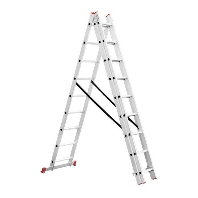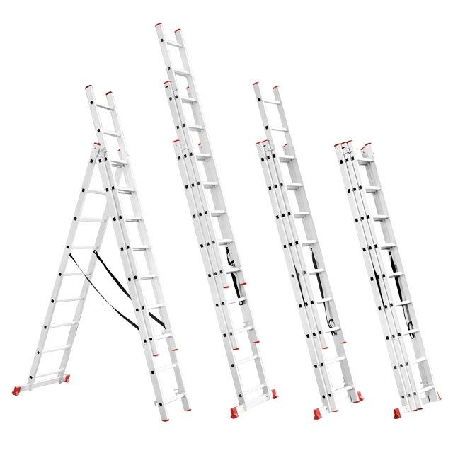 Драбина з алюмінію, 3-х секційна універсальна розкладна, 3x9 сход., 5,93м INTERTOOL LT-0309