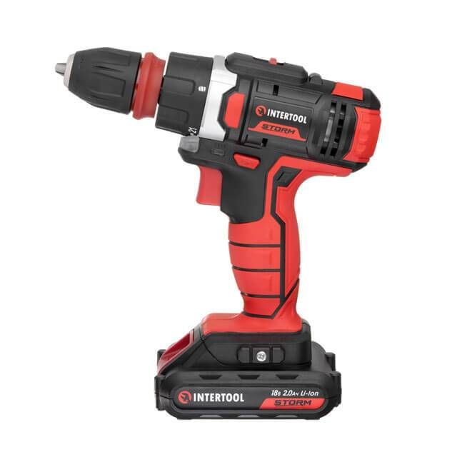 Дриль-шурупокрут акумуляторний Li-Ion 18 В, 25 Nm, 0-400/0-1500 об/хв, 2x2.0 Аг, знімний патрон INTERTOOL WT-0317
