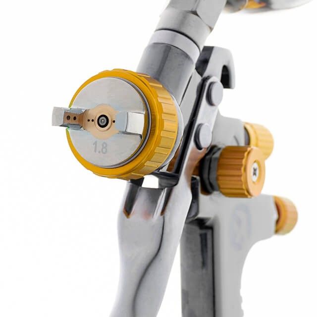 - Форсунка діаметром 1,8 мм дозволяє використовувати лакофарбові матеріали в'язкої консистенції;
