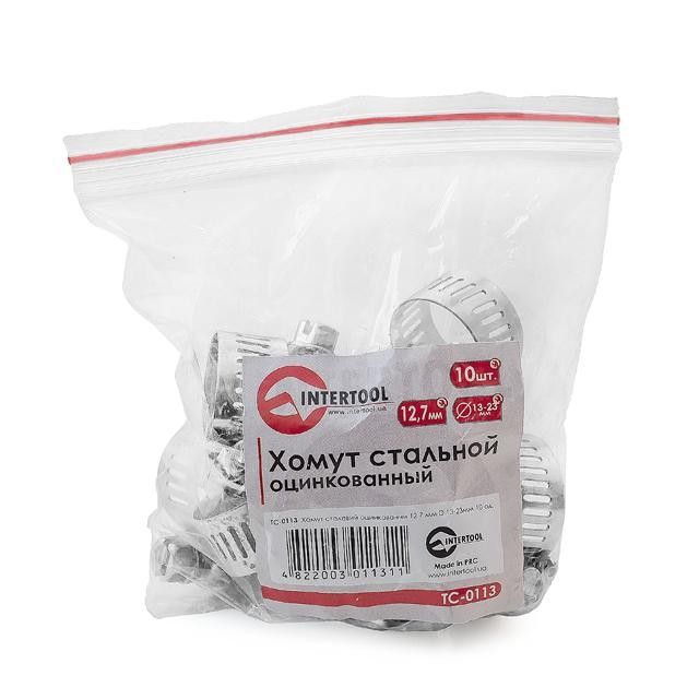 Хомут сталевий оцинкований 12,7 мм D 13-23 мм INTERTOOL TC-0113