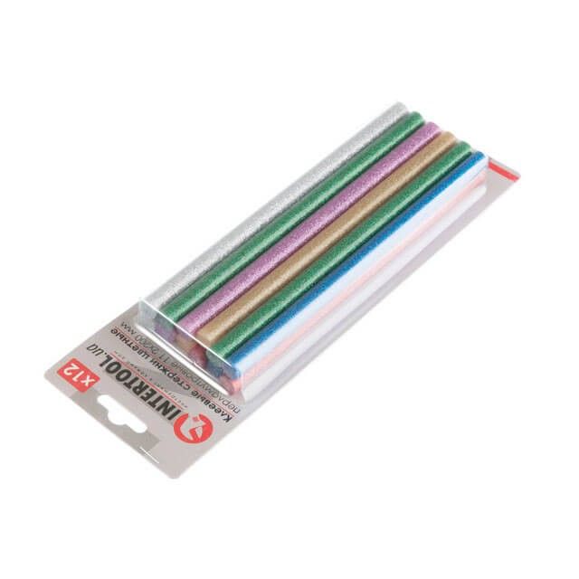 Комплект кольорових перламутрових клейових стрижнів 11.2 мм * 200 мм, 12 шт INTERTOOL RT-1035