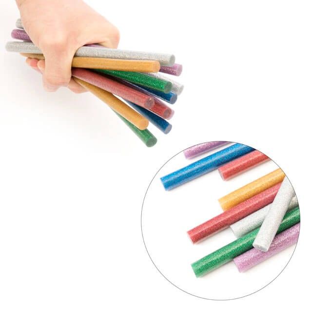 Кольорові клейові стержні перламутрові (з блискітками), виготовлені з пластичного термоплавкого клею - етиленвінілацетату, безпечного для здоров’я.