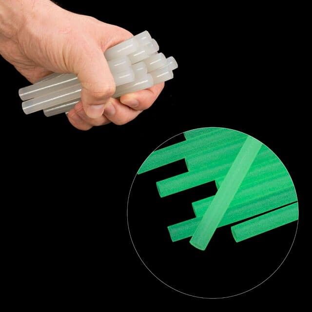 Флуоресцентні термоклейові стержні INTERTOOL RT-1037 мають унікальну властивість, вони світяться в темряві зеленим світлом! Їх ще часто називають люмінесцентним клеєм.