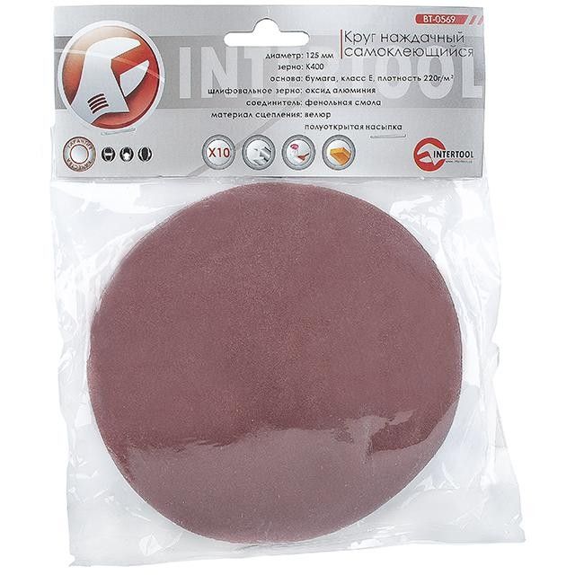 Круг наждачний самоклеючий 125 мм, папір клас E, щільність 220 г/м2, К400, уп. 10 од. INTERTOOL BT-0569
