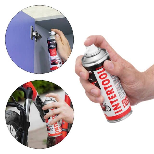 Мастило-спрей "Силікон" – це універсальний засіб для надійного та довговічного захисту від зносу деталей, що рухаються та труться. Мастило INTERTOOL FS-6020 не змивається водою та створюють надійну плівку на поверхні. Завдяки своїм унікальним властивостям використовується як у домашніх, так і в професійній цілях.