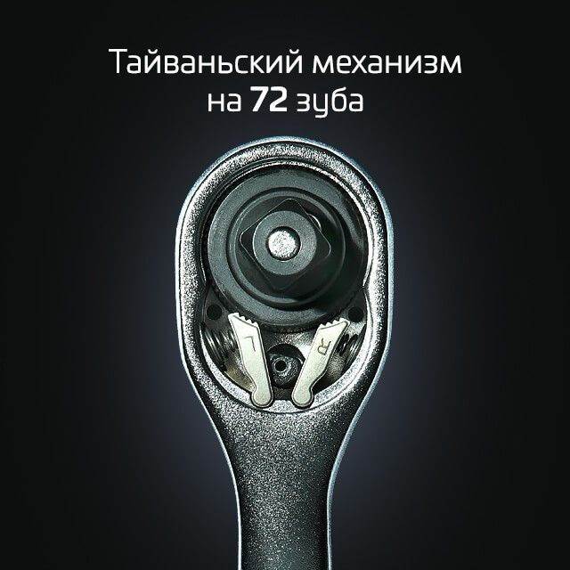 - Надійна тріскачка. Механізм тріскачки та всі його комплектуючі виготовлені в Тайвані, у поєднанні з Cr-V сталлю – це міцний та надійний інструмент з м’яким ходом храпового механізму.