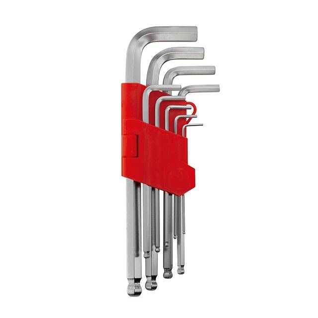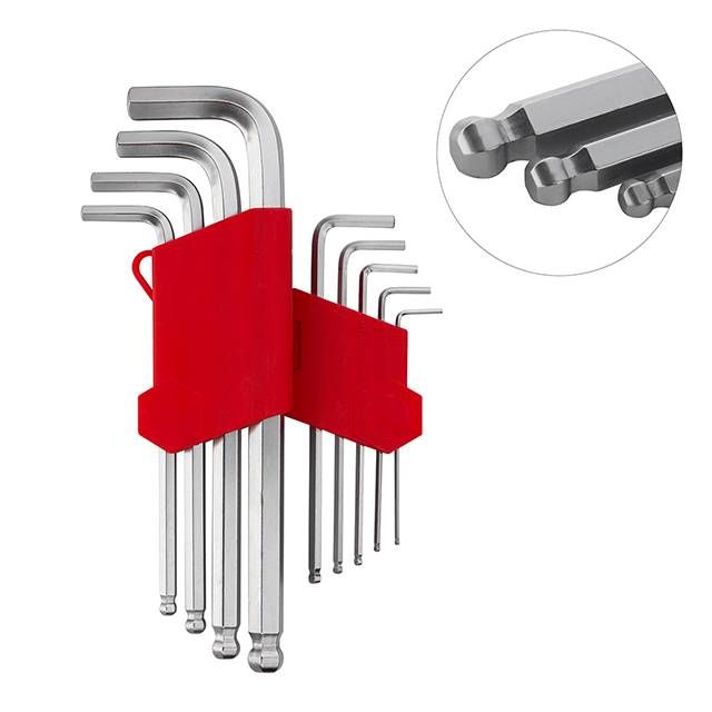 Набір ключів Г-подібних подовжених шестигранних із кулястим наконечником 9 шт., 1.5-10мм, Cr-V, 55 HRC INTERTOOL HT-0603