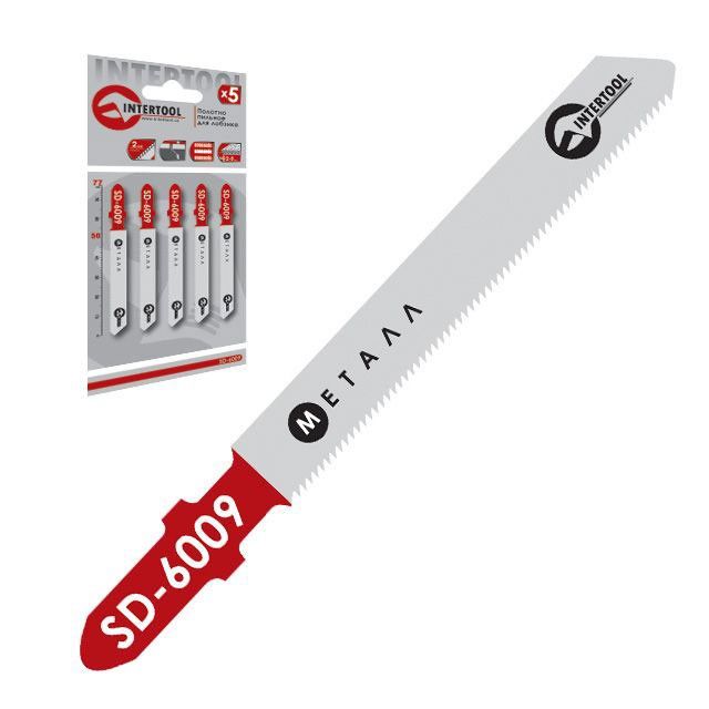 Набір полотен 5 од. для лобзика. Робоча довжина 50 мм, шаг зуба 2,0 мм, для роботи з тонким листовим та кольоровим металом. INTERTOOL SD-6009