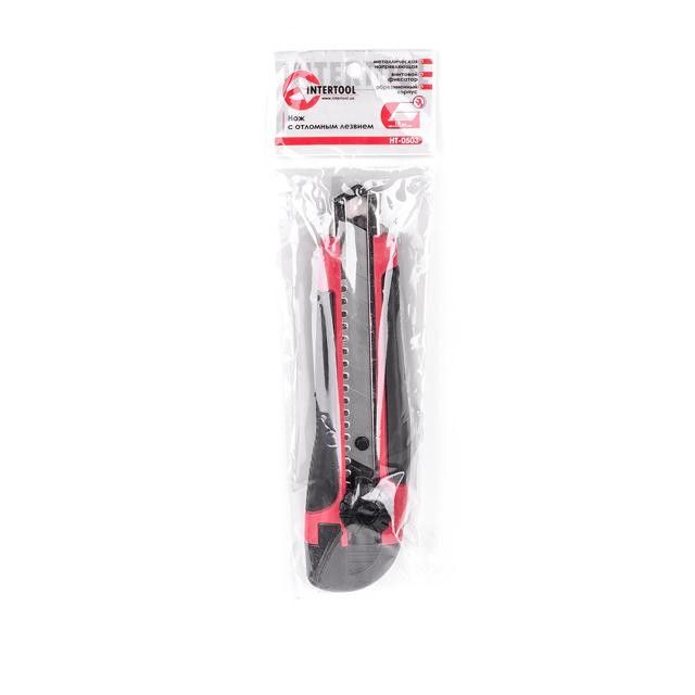Ніж з металевою напрямною під лезо 18 мм з гумованою рукояткою INTERTOOL HT-0503