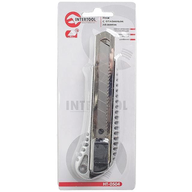 Ніж з відламним лезом 18 мм, з металевою напрямною, протиковзкий корпус INTERTOOL HT-0504