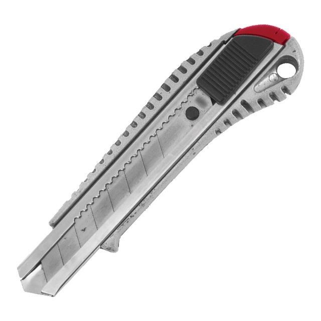Нож с 18 мм сегментным лезвием, применяется на стройках, складах, а также в домашней и офисной работе. Без особых усилий справляется с монтажной пеной, обоями, скотчем, плёнкой, бумагой и др.