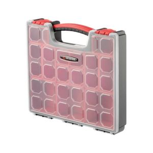 Органайзер виготовлений з міцного, товстого пластику. Два замки надійно притискають кришку та не дають пересипатися навіть невеликим деталям.