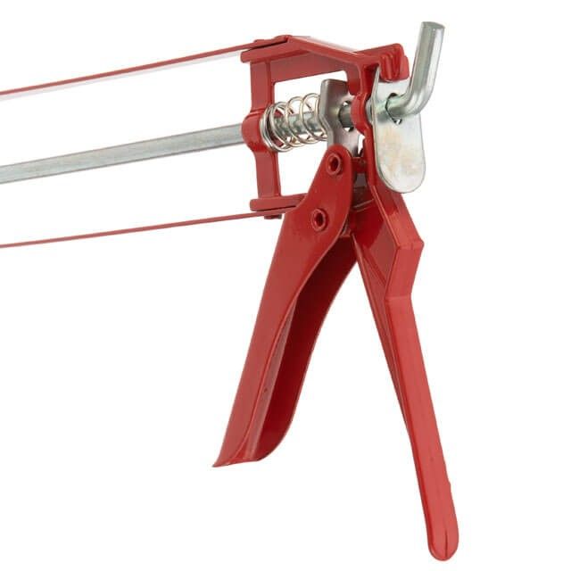 Пістолет для видавлювання силікону «рамоподібний» INTERTOOL HT-0022 використовується для екстракції герметиків різних видів з туб. Завдяки рамоподібній конструкції картридж фіксується більш щільно. Використання пістолета дозволяє зробити процес подачі герметика рівномірним, з високим ступенем контролю. Конструкція пістолета HT-0022 представляє собою металеву раму зі штовхачем і курком.