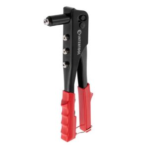 Пістолет заклепувальний ручний INTERTOOL RT-0005 виготовлений з надміцного інструментального металу. Використовується для встановлення алюмінієвих заклепок діаметром 3,2; 4; 4,8 мм. Дозволяє скріплювати декілька деталей чи листів матеріалу. Ручки оснащені пластиковими ергономічними накладками, що забезпечують надійний захват в руках. Металева скоба фіксує ручки заклепочника поза роботою.