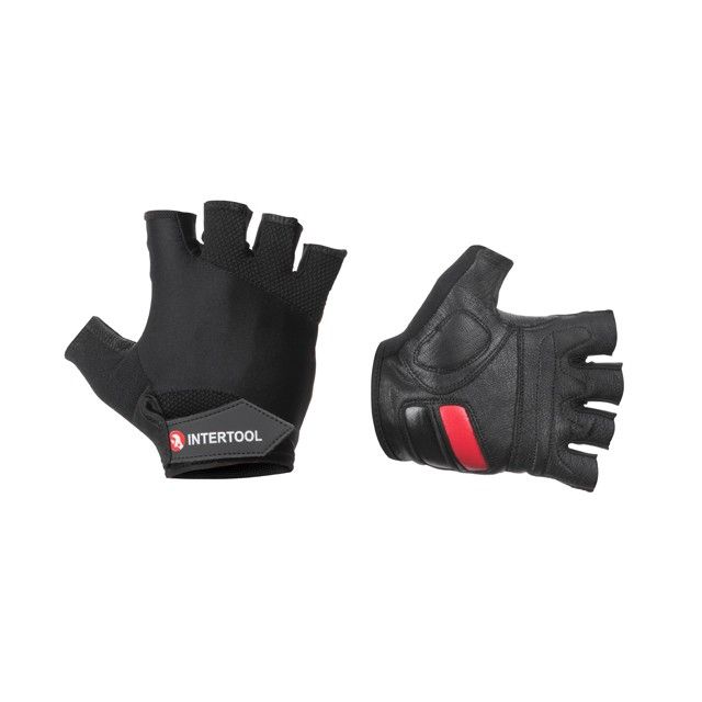 Рукавичка без пальців, шкіряна, гелеві та гумові вставки на долоні, вставки з дихаючого неопрена на тильній стороні, фіксація ремінцем на липучці, 10 " INTERTOOL SP-0147
