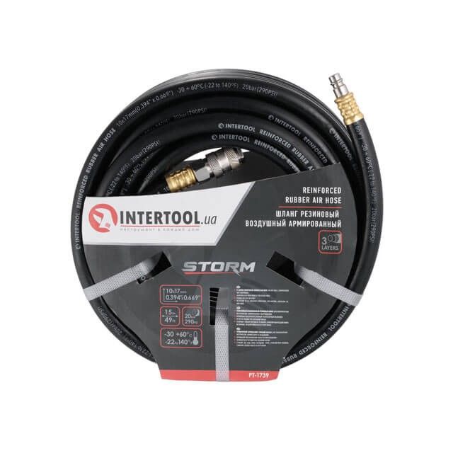 Шланг гумовий повітряний армований 20атм 10*17мм 15м з швидкороз'ємними з'єднаннями STORM INTERTOOL PT-1739