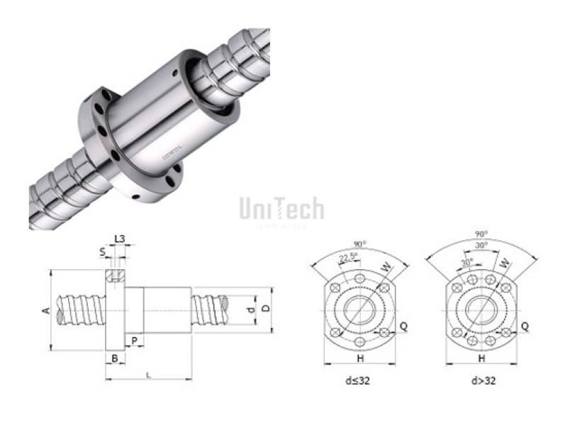 Гайка ШВП FSC HIWIN - фланцевая одинарная гайка шарико-винтовой передачи с внутренним типом рециркуляции шариков, без предварительного натяга. Гайка с однозаходной правосторонней резьбой с диаметром винта 40 мм и шагом резьбы 5 мм. Конструкция оснащена контактным резиновым уплотнением NW. Относится к серии Super S. В серии Super S используется запатентованная система возврата, которая может поглощать шум от удара шара, что значительно снижает интенсивность шума и позволяет ШВП поддерживать максимальную производительность в суровых условиях. Где можно использовать гайки FSC HIWIN: Гайки FSC используются в шарико-винтовой передаче, применяемой в высокоточном измерительном оборудовании, в станках с ЧПУ, в приводных системах точного позиционирования, модулях линейного перемещения.Обладают более высоким КПД, меньшим износом из-за малых потерь на трение, бесшумной работой с большой производительностью.