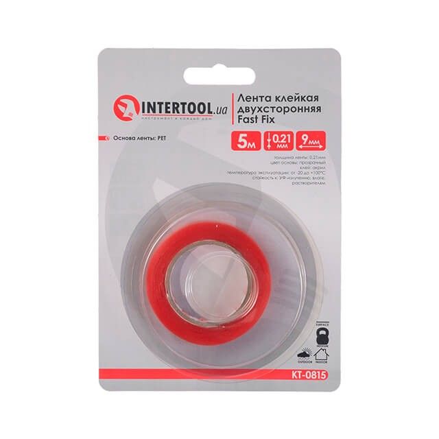 Стрічка клейка двостороння FAST FIX 9мм * 5м * 0,21 мм, прозора, РЕТ INTERTOOL KT-0815