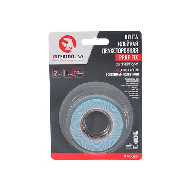 Стрічка клейка двостороння PROF FIX 12мм * 2м * 1мм, біла, спінений поліетилен, Storm INTERTOOL KT-0820