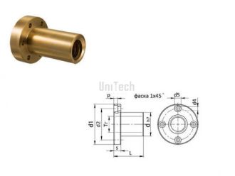 Трапеция 20x4 Гайка правая резьба HDL Фланцевая бронзовая /d2=40 d=30 L=60/