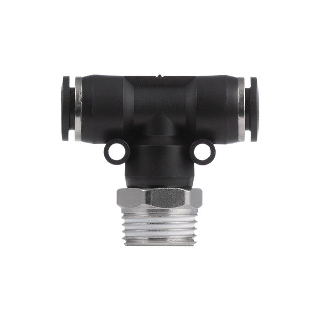 Цангове з'єднання T-подібної форми використовується для створення пневматичних магістралей і для монтажу пневмосистем. Забезпечує повністю герметичне з'єднання різних пневматичних шлангів без пошкодження їх поверхні (PU, PE, PA) - поліуретанових, поліетиленових, поліамідних тощо.