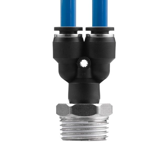Цангове з'єднання Y-подібної форми використовується для створення пневматичних магістралей і для монтажу пневмосистем. Забезпечує повністю герметичне з'єднання різних пневматичних шлангів без пошкодження їх поверхні (PU, PE, PA) - поліуретанових, поліетиленових, поліамідних тощо.