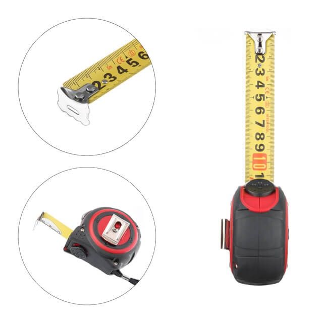 Сталеве полотно рулетки товщиною 0,11 мм має нейлонове покриття, яке запобігає утворенню корозії та стиранню розмітки під час частого використання.