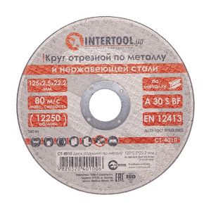 Диск відрізний по металу 125x2.5x22.2 мм INTERTOOL CT-4010
