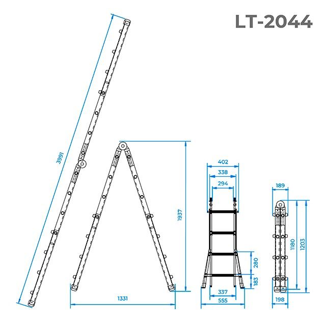 Драбина з алюмінію, універсальна розкладна, телескопічна 4*4 сход. INTERTOOL LT-2044