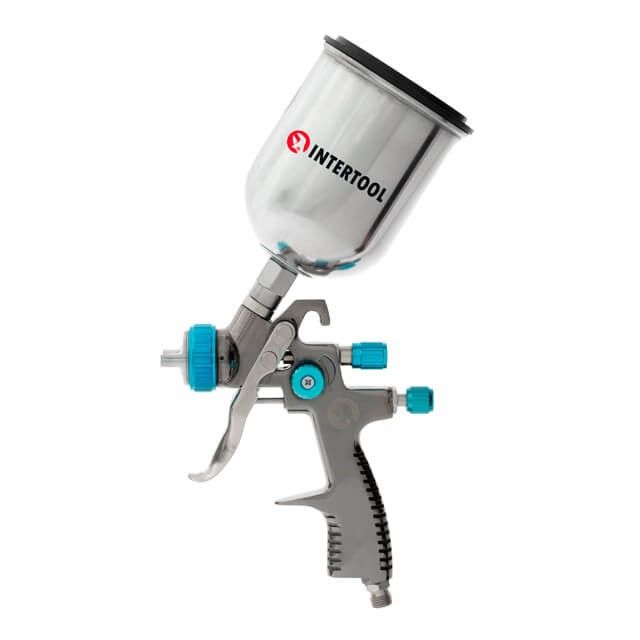 Фарбопульт пневматичний LVLP BLUE професійний, форсунка 1.4мм, верхній металевий бачок 600мл., 1.5бар INTERTOOL PT-0133