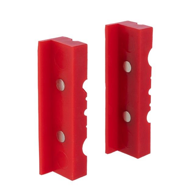 Магнітні накладки для лещат HT-0098 виготовлені з термопластичного поліуретану (TPU) і призначені для роботи з різними заготовками з дерева, металу, пластика тощо. Матеріал виготовлення достатньо жорсткий, щоб надійно утримувати деталі на місці, але в той же час пружний і пластичний, щоб захистити делікатні поверхні затискуваних предметів.