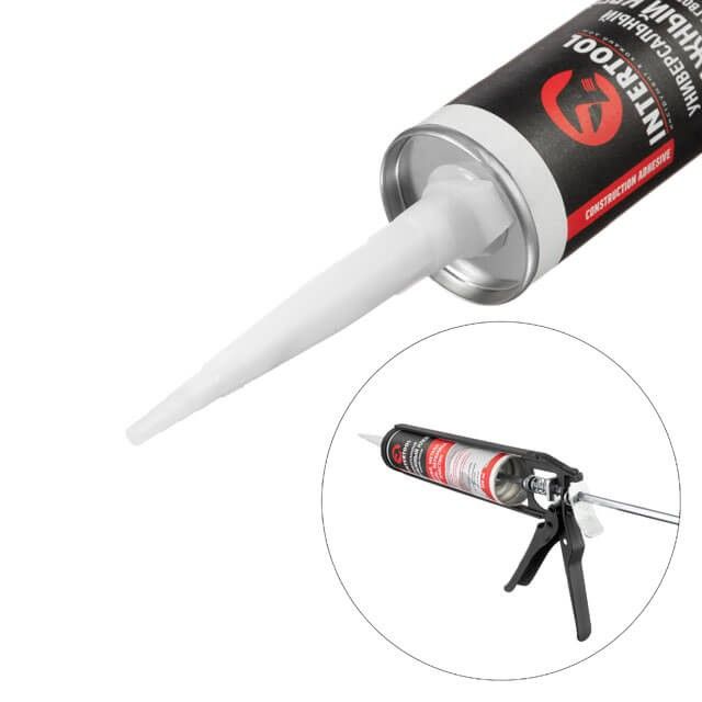 Для легкого та швидкого нанесення клею рекомендуємо використовувати пістолет-аплікатор з функцією моментальної зупинки подачі матеріалу INTERTOOL HT-0028.