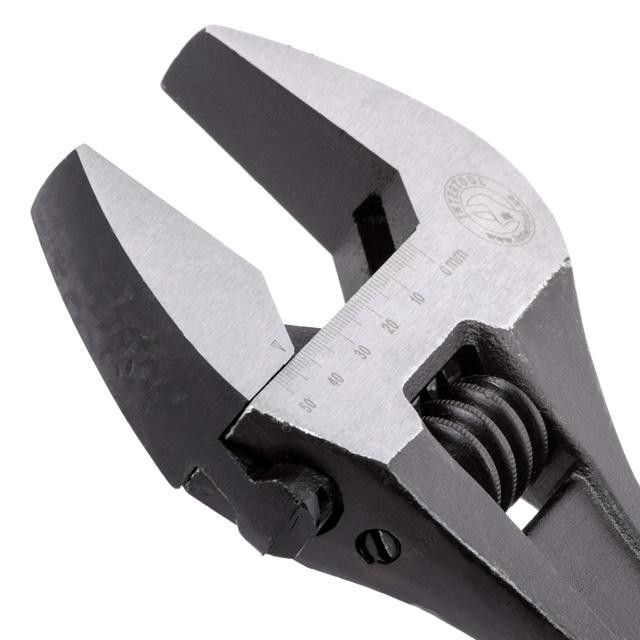 Вирізняється своєю простотою і надійністю, а його міць відчуваєш з першого дотику! Ключ важкий і надійно фіксує з'єднання. Губки розводяться від 0 до 45 мм. Завдяки нанесеній шкалі, можна точно відкалібрувати розмір, в залежності від кріплення, яке Вам необхідно відкрутити.