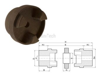 Муфта кулачковая является соединительным элементом между приводным и ведомым валами, позволяющим исключить погрешности в работе привода. Применяя муфту HRC можно уменьшить несоосность валов до 0,5 мм и аксиальное расхождение до 1,7 мм.Конструкция кулачковой муфты HRC150: Муфта HRC150 с черновым отверстием под расточку предназначена для механической обработки до нужного диаметра вала D=10-70 мм или нестандартного шлицевого соединения. Муфта состоит из чугунных полумуфт и упругого элемента (звездочки) внутри. Также в наличие муфты под втулку с наружной или внутренней установкой.Вы можете купить отдельно полумуфту или звездочку, а также муфту HRC150 в сборе. Мехобработка муфт По вашему запросу мы можем выполнить мехобработку муфты с черновым отверстием под ваши требования. Виды работ по металлообработке деталей можете посмотреть тут. Применение муфт HRC:Кулачковые муфты могут применяться при достаточно больших нагрузках и высоких оборотах, но конкретный типоразмер определяется нагрузками, что передаются от ведомого вала к ведущему. Муфты HRC подходят при соединении валов электродвигателя, редуктора, мотор-редуктора и встречных присоединяемых элементов.Соединительня чугунная муфта HRC150 это недорогой и надежный вариант для передачи крутящего момента.Если вам нужны муфты меньшего размера, но с таким же крутящим моментом или звездочки разной жесткости, вы можете подобрать необходимый тип среди муфт TRASCO.