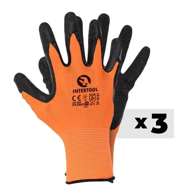 SP-0121 Рукавиці трикотажні, синтетичні, оранжеві, вкриті чорним рифленим латексом, 10" - 3 од.