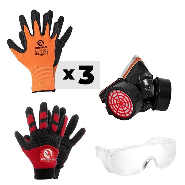 Жодна робота не може обійтися без мінімального набору засобів індивідуального захисту. Для цього ми поклали в набір два типи рукавичок, захисні окуляри та респіратор: