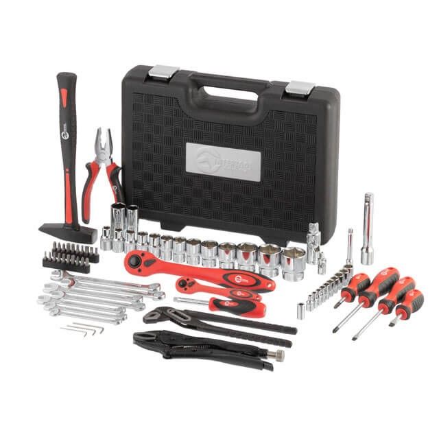 Варто окремо згадати про рукоятки з храповим механізмом на 72 зубця з можливістю скидання та фіксації торцевих головок, які, крім цього, вкриті захисним шаром з поліпропілену, що повністю виключає можливість появи корозії. Вирізняються міцністю та легкою вагою оскільки теж виготовляються з хром-ванадієвої сталі. Доповнює набір слюсарний молоток з дерев'яною ручкою. Всі насадки виготовлені з надміцної хром-ванадієвої стали, що забезпечує високі експлуатаційні характеристики, а також захист від корозії. Завдяки суворому дотриманню технології виробництва, весь інструмент характеризується точністю та відсутністю дефектів. Порівняно невеликі габарити набору, дозволяють зберігати його як в гаражі, так і вдома.
