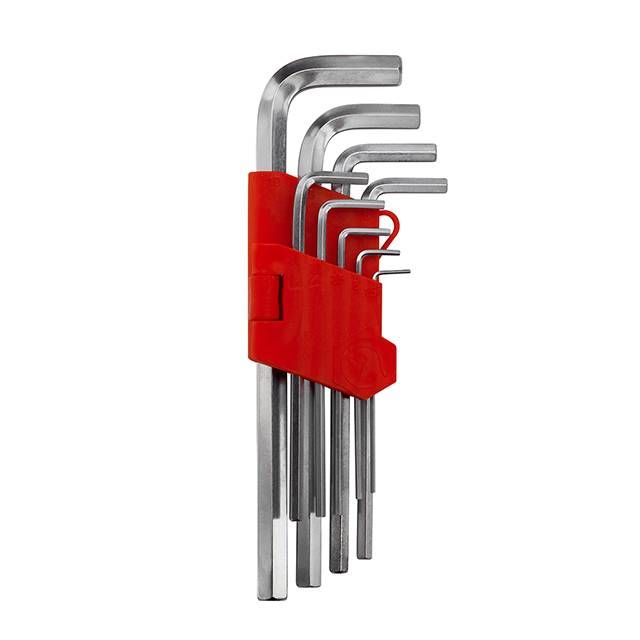 Набір ключів Г-подібних шестигранних подовжених 9 шт., 1.5-10мм, CrV, 55 HRC INTERTOOL HT-0602