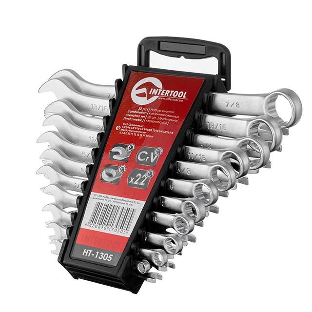Набір ключів комбінованих 22 од. дюймових 11 од метричних 11 од INTERTOOL HT-1305