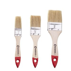 Три пензлі флейцевих з набора INTERTOOL KT-1003 призначені для проведення малярних робіт всередині приміщення і ззовні, для розгладжування попередньо нанесеного лакофарбового покриття. Ворс пензлів виготовлений з натуральної щетини, хімічно стійкий до різноманітних агресивних речовин. Якість виготовлення запобігає "висмикуванню" волосків, забезпечує тонкі і акуратні мазки і суттєво скорочує витрату матеріалів. В даному наборі представлені пензлі шириною 25 мм, 38 мм і 50 мм. Ними буде зручно фарбувати вузькі, невеликі за площею а також проблемні і важкодоступні місця.