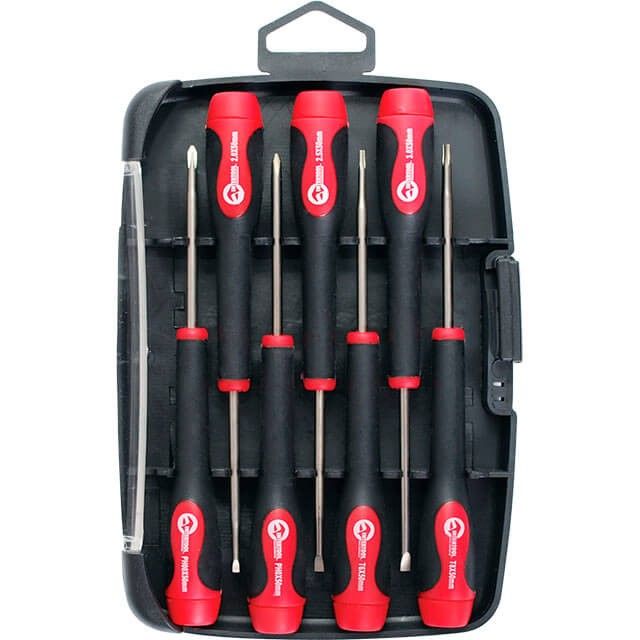 Набор точних викруток INTERTOOL VT-2007 призначений для робіт з дрібними механізмами і пристроями. В комплект входить 7 викруток з різними типами шліців. Всі викрутки оснащені ергономічною прогумованою рукояткою, яка забезпечує зручний захват, а також виключає проковзування інструмента.