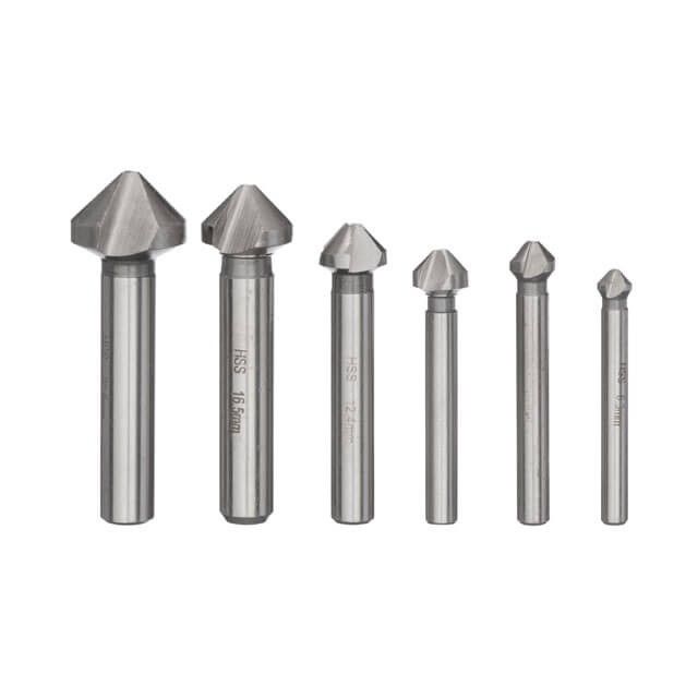 Оптимальне відведення стружки і додавання охолоджуючих рідин в процесі роботи збільшує термін служби інструментів. В комплекті 6 зенкерів: 6,3, 8,3, 10,4, 12,4, 16,5 і 20,5 мм.