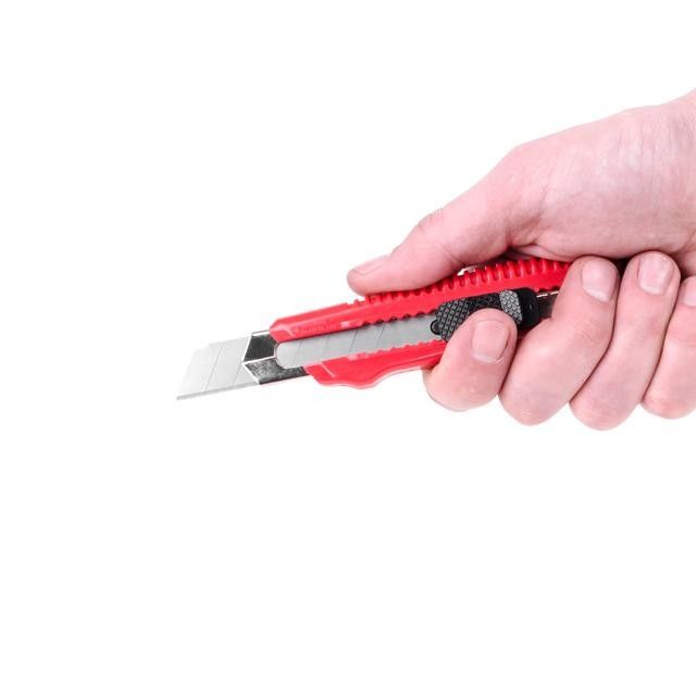 Ніж з 18 мм сегментним лезом, застосовується на будівельних майданчиках, складах, у домашній та в офісній роботі. Без особливих зусиль впорається з монтажною піною, шпалерами, скетчем, плівкою, папером та ін.