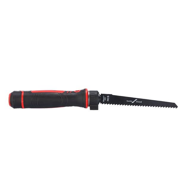 Рукоятка сумісна зі звичайними полотнами для шабельних пил, тому, за наявності підходящого полотна, може використовуватися для обрізання будь-яких матеріалів. В комплекті поставляються 6 полотен довжиною 150 мм (по 2 кожного типу):
