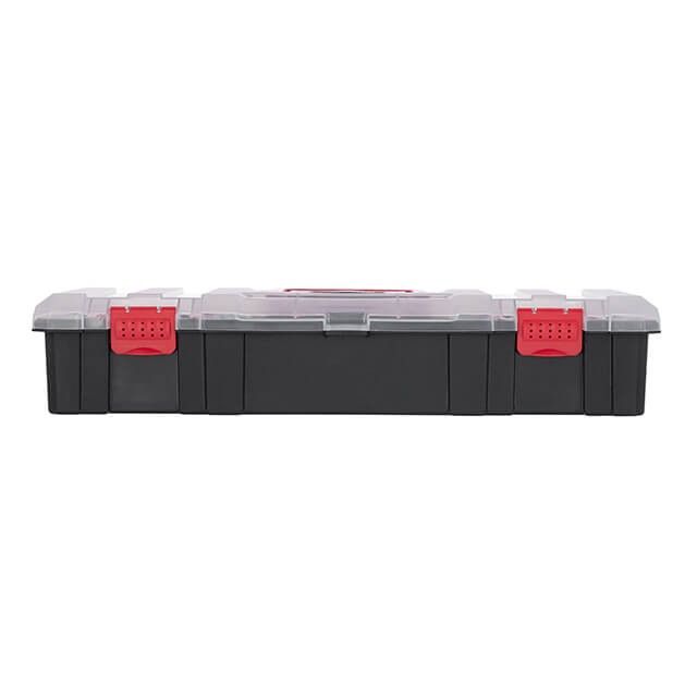 Кришка виготовлена з міцного поліпропілену і стійка до сколів. Прозорість кришки допомагає швидко знаходити необхідні предмети. Органайзер має зручну ручку для транспортування.