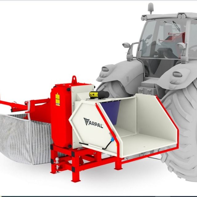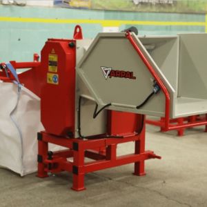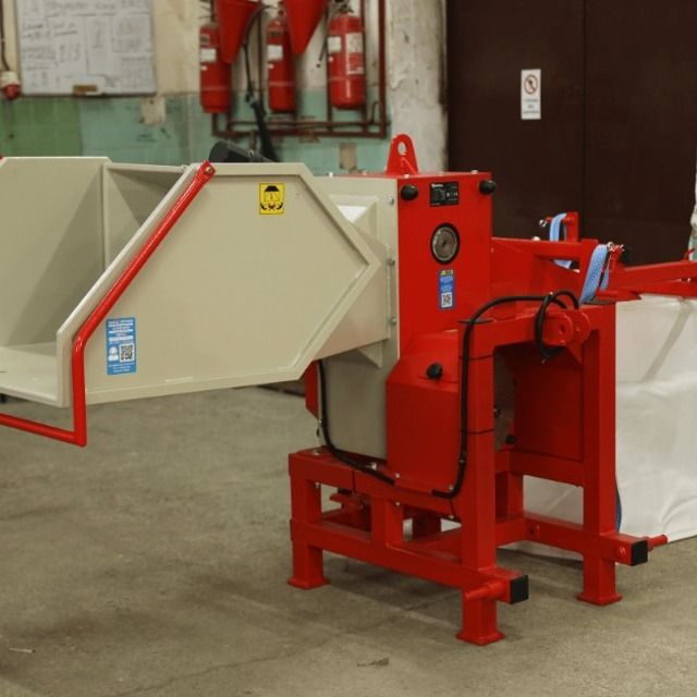 На подрібнювачі АМ-120БД MAX встановлено бункер, який здатний фасувати готову продукцію в сітки. Бункер вивантаження має два кріплення під сітки та шибер-перемикач, який дозволяє вибрати потрібний напрямок фасування. Така конструкція дозволяє значно пришвидшити процес фасування порубаних дров, підходять стандартні сітки розміром 50х80 см. Також, можна замовити комплектацію з прямим вихідним бункером, для відвантаження подрібненого гілля насипом.