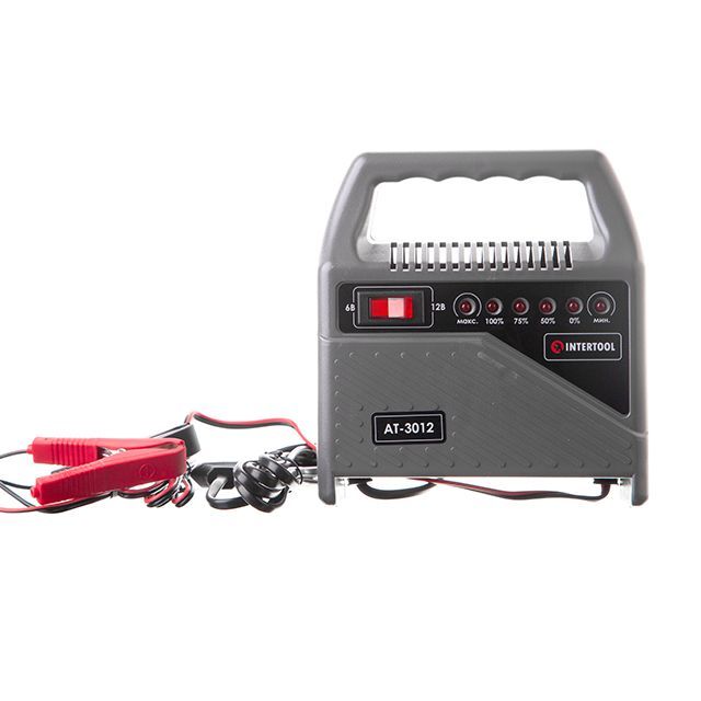 Зарядним пристроєм AT-3012 INTERTOOL можна заряджати акумуляторні батареї 6 В та 12 В. Дана модель зарядного пристрою ідеально підходить для заряджання мотоциклів, легкових автомобілів та інших механічних засобів, які мають акумуляторну батарею з таким типом батарей.